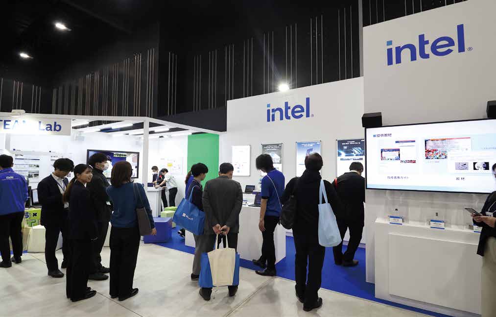 展示会場には国内外から214 社の ITベンダーが集結し、これからの AI 活用時代を見据えた各社自慢の製品やサービスが紹介されました。ユーザーの AI 活用に欠かせない半導体を提供するインテルは AI PCとSTEAM 教育にフォーカスした展示を行いました。