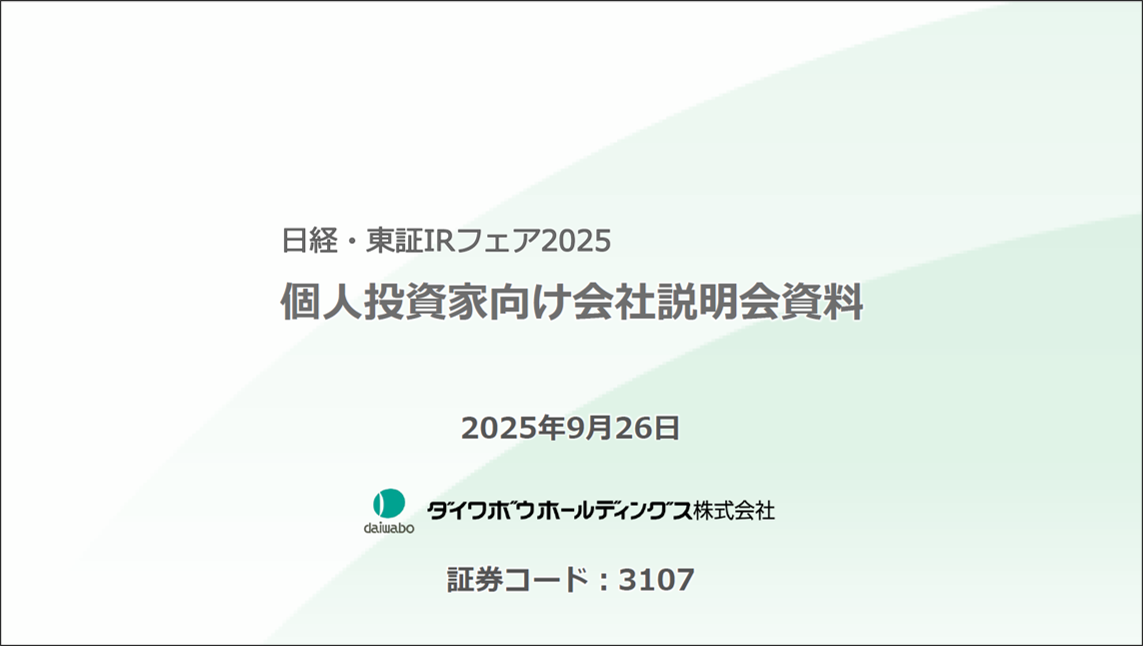 日経IR・個人投資家フェア2023 会社説明会 > 説明会資料 |
